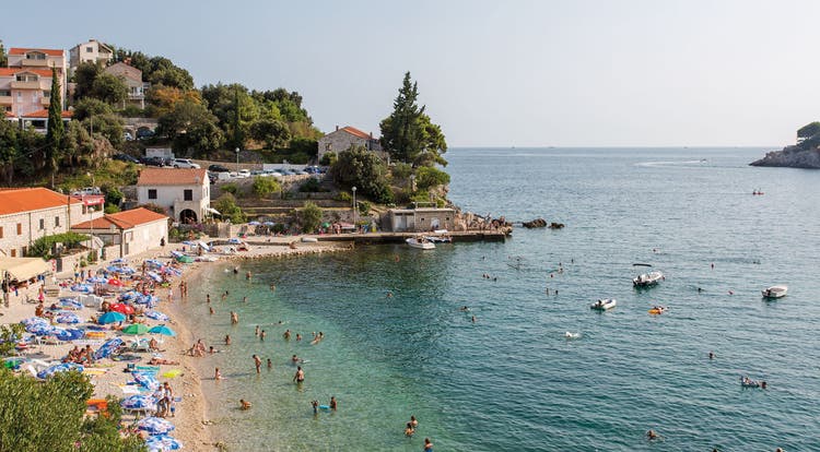 This combined resort’s just a little area, with terracotta tops standing in traditional fashion – you can instantly see you’re near Dubrovnik. Thick, forested hills meet silky-looking seas around these parts, so take some time to get to know the scenery. It’s an idyllic Dalmatian Riviera pick.