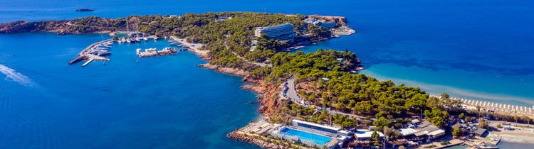 Vouliagmeni is best known for its crystal-clear beaches, exclusive beach clubs, upscale restaurants, and the legendary Lake Vouliagmeni, a natural thermal spa surrounded by limestone cliffs.