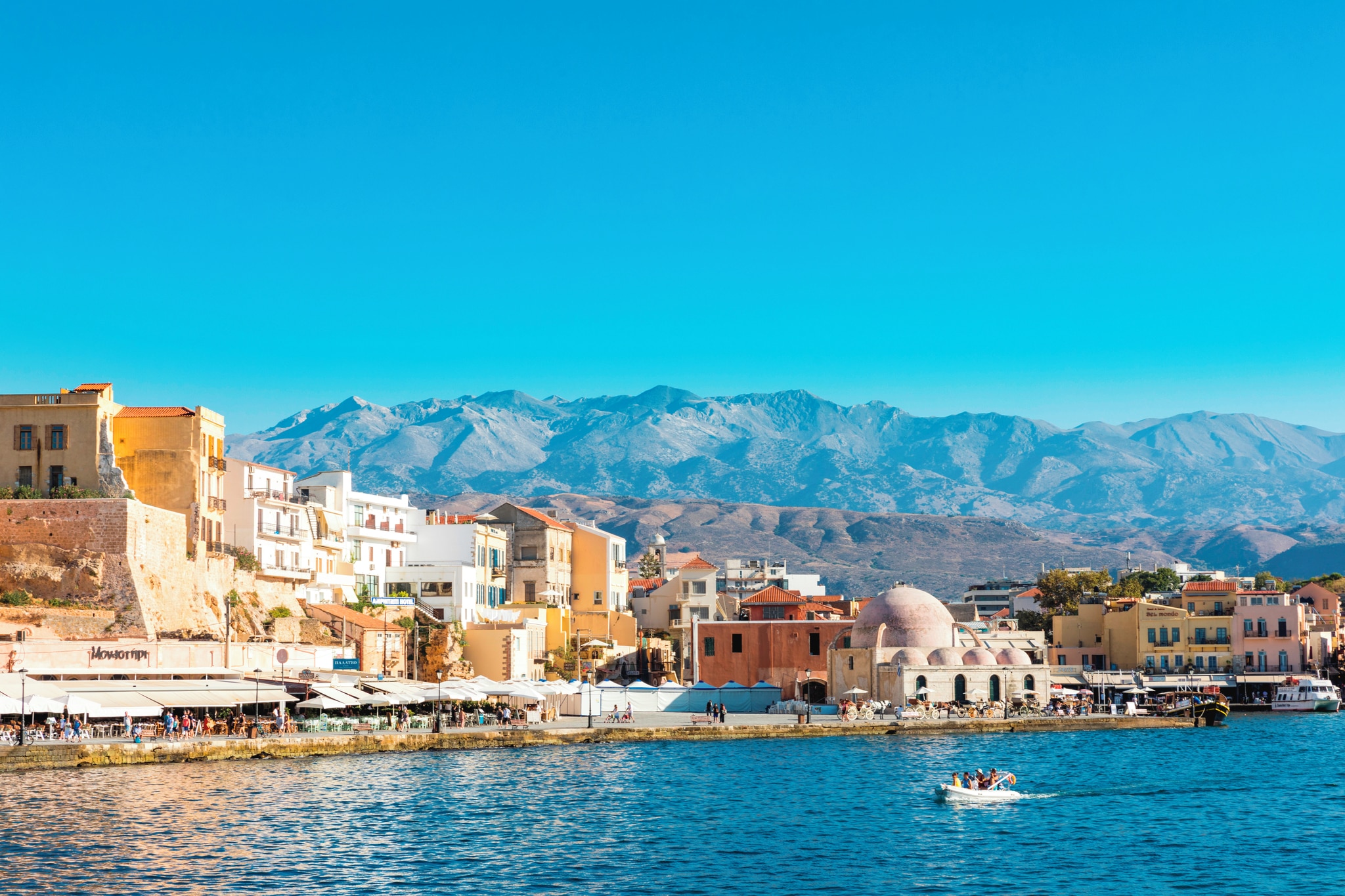 Chania Town is a must-visit in this part of the island. Life buzzes around the ancient harbour and its pastel-coloured cafés, so spend some time here eyeing up the chalkboard specials. But don’t miss a walk around the cobbled streets behind, where you can try a Turkish hammam or pick up some produce from the indoor market.