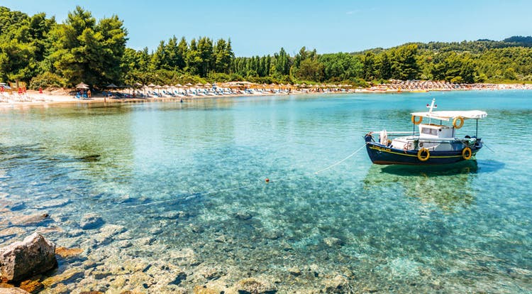 Rippling waters, a pine-clad backdrop and plenty to do for sporty types, the sands of Paliouri really deliver – despite the walk down the hill to reach them. You’ll have space to lounge around at your leisure and absorb the bounty of stunning scenery. The enchanting navy waters shelve against these wispy, bronze beaches, so prepare to be dazzled.