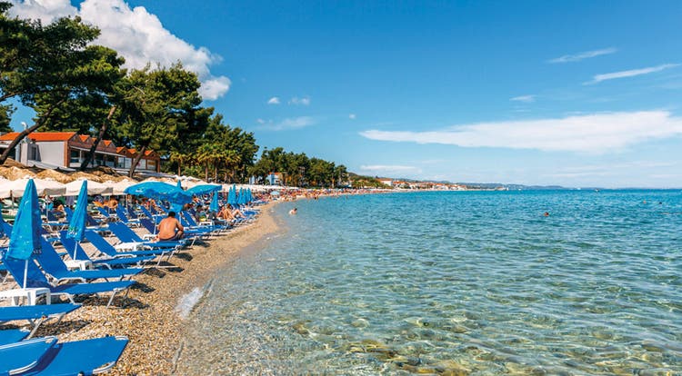 Pefkohori is brilliantly located, with plenty of neighbouring villages to visit. Glarokavos is one such place – a lush lagoon entwined with stunning views by day, and a beachfront party location by night. Prepare to be wowed by sensational scenery as you journey to Turtle Island, aptly named after its shape.