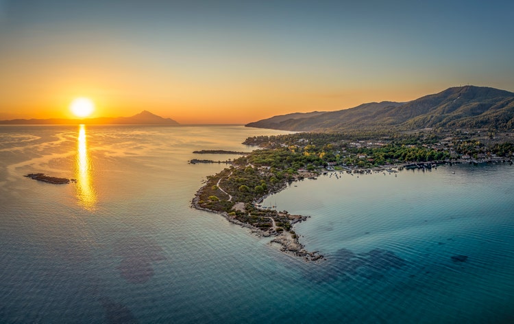 Beaches here come in all shapes and sizes, from sandy stretches to smooth pebbles and rocky edges perfect for paddling. Calm, shallow waters make them ideal for easy swims, while pine trees fringe the shoreline, offering welcome shade and that classic Greek holiday feel.