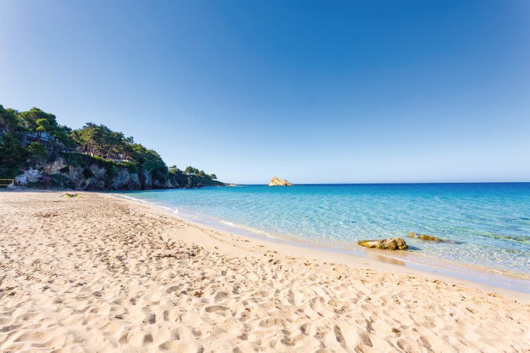 The largest of the Ionian Islands, Kefalonia's also one of the most unspoiled. Its coast is lined with sandy beaches and dramatic white cliffs, while the middle of the island is covered in mountains, wandering goats and vineyards. No wonder it was used as a major film backdrop! First stop: Myrtos Beach.