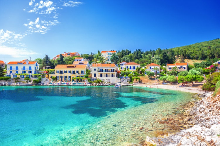 Top attractions include Myrtos Beach with its dramatic cliffs, the underground Melissani Cave lake, and the elegant harbour village of Fiskardo. The island also features charming inland villages and scenic viewpoints.