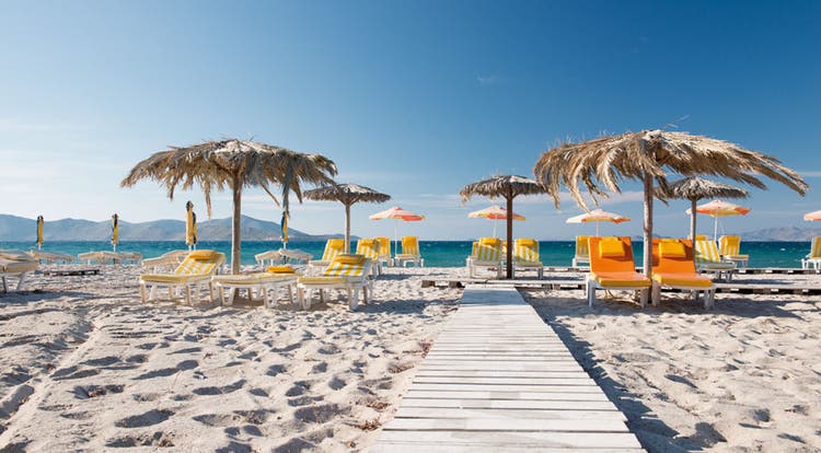 It’s that stretch of long, white-sand beach that gets most people excited about this chilled-out little resort. Plus, there are incredible views of Turkey across the water. It’s just a short walk to the resort’s half a dozen or so streets, which are dotted with authentic Greek tavernas and low-key, family-friendly bars.