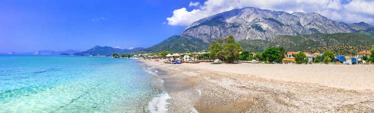 Relaxation and rustic charm? That’s Kampos for you! Its long pebbly patch is the crowning glory, offering loads of space and plenty of beach bars. Beyond the beach, you’ll find traditional tavernas, friendly locals and stunning mountain views – the perfect recipe for a laidback Greek island escape.