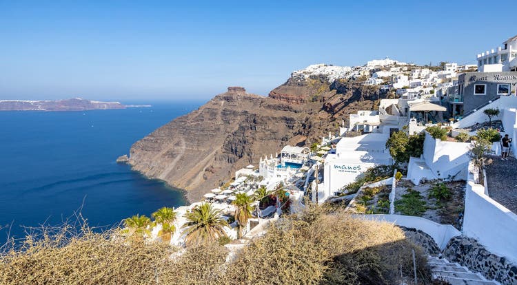 Firostefani is famous for its stunning views of the caldera and the Aegean Sea. It is a quieter village compared to its neighbour, Fira, but still offers breathtaking sunsets, charming streets, and traditional Cycladic architecture.