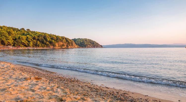 With a shorefront that’s as golden as the sun’s rays, Kolios Beach is a beautiful place. Sink into the sands and take in the view of the calm, crystalline waters, encircled by forested headlands. The rustic parasols are perfect if you’re seeking shade too.