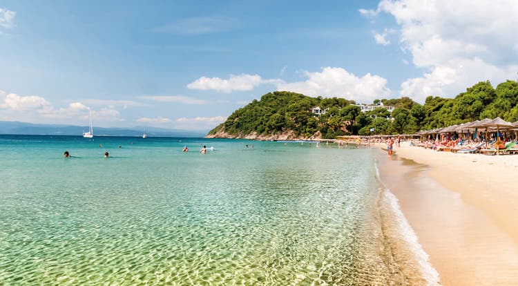 The golden sands of Koukounaries Beach stretch along the south coast for more than one kilometre. Its pristine shore and excellent facilities have earned this spot Blue Flag status. Scuba diving’s a popular choice here, as the water is so clear and filled with colourful fish.