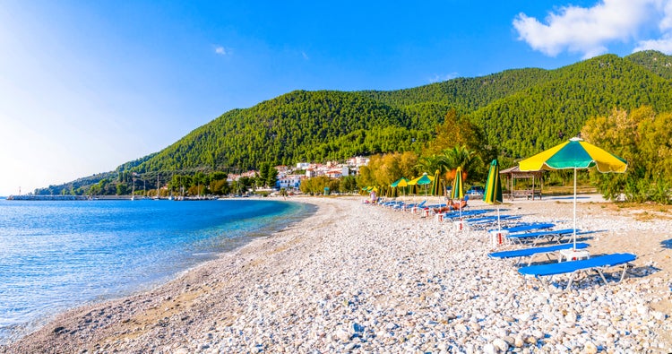The island’s south coast is where you’ll find Skopelos’ best beaches. For bags of atmosphere and dreamy views, Kastani Beach is the place to go. Pine-framed Panormos Beach is just as stunning, with lots of loungers and a few tavernas for lunch on the shore. We’re also big fans of Stafylos Beach, only 5km from Skopelos Town.