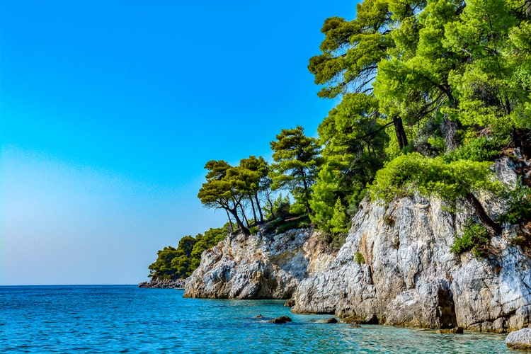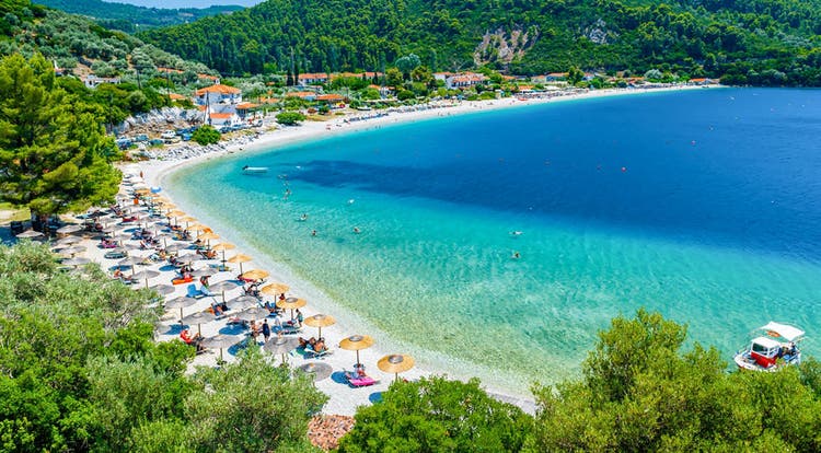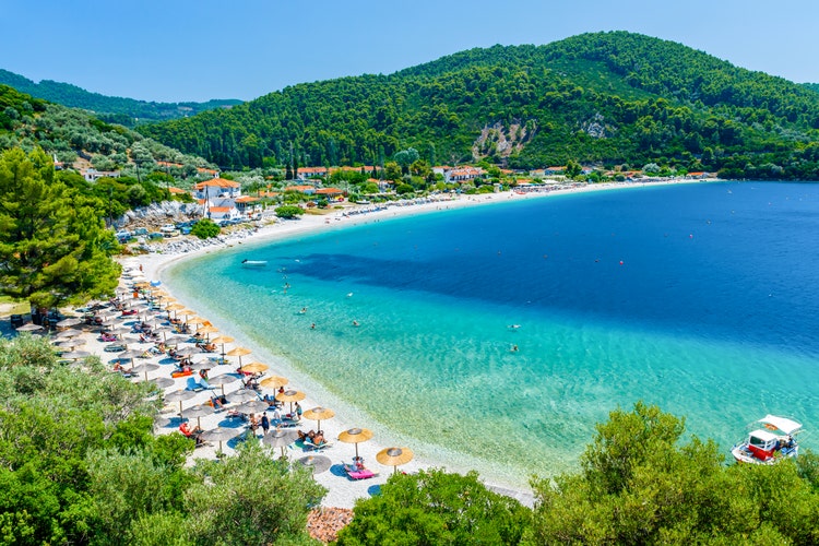 Skopelos gained fame as a filming location for Mamma Mia, but it’s also loved for its traditional villages, green hills and clear waters.