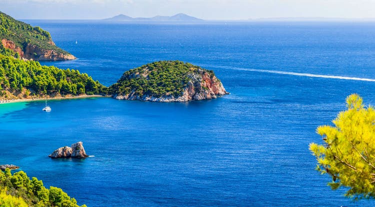 Skopelos is famed for its rugged good looks. Dense pine forest blankets more than half the island, making it the greenest in all of Greece. You’ll also find vineyards, orchards and olive groves, creating a lush hinterland to explore. Walking routes wind through the hillsides, passing historic monasteries along the way – nearby Mount Palouki is a great place to try.