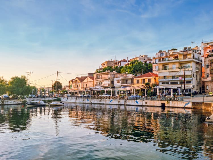 Lovely Limenaria is the second-largest town in Thassos, on the island’s southern coast. It boasts a long seaside promenade, sandy beaches and plenty of cafés and charming tavernas. Get out and explore, sample the local seafood and check out historic mining buildings nearby. The sunsets are a real hit too!