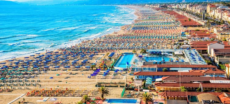 Rolling green hills and medieval villages may be the scenes splashed on most Tuscan postcards, but this part of Italy’s got a twinkling coast to its name too. Venture to Viareggio, the region’s chief seaside spot, where striped parasols embellish sandy shores and grand hotels pepper a palm-lined promenade. Forte Dei Marmi’s another swanky stunner, where exclusive beach clubs and chic cocktail bars take centre stage.