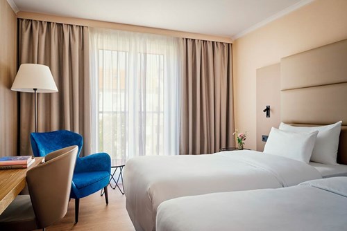 Standard Double or Twin rooms sleep up to 3 adults and have bathroom containing a bath or a shower, air conditioning, hairdryer, flat screen television, safety deposit box, mini bar* and coffee making facilities. Room upgrade options and Sole Use rooms are also available.
