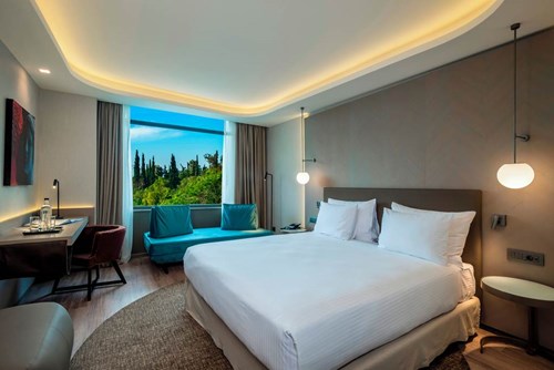 The Radisson Blu Park Hotel sits at the edge of one of the city's largest parks and is only a short stroll from the National Archaeological Museum. When it comes to dining guests spoiled for choice, the Oak Room Café is the perfect spot for coffee and cake after a morning exploring, St' Astra is a dining experience where you can savour cocktails and cosmopolitan Asian and Mediterranean fare, with stunning views of the Acropolis. Enjoy comfortable and contemporary style in the rooms and suites. This modern hotel with spacious outdoor pool is an ideal base for discovering the vibrant atmosphere and rich history of Athens. ... More