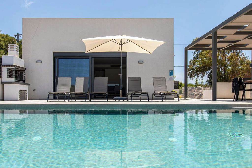 Located in a prime position, just 300m from the beach and close to a popular beach front taverna serving traditional Greek cuisine. Menta Villa is a wonderful choice for those wanting to be close to the coast and amenities. Menta Villa sits within a group of four villas sharing a gated entrance. Steps lead up to the accommodation which consists of a modern, light and fresh kitchen area with breakfast bar and the living space which opens out on to the inviting pool terrace, the perfect place to start your day. Both bedrooms have a contemporary minimalistic style and benefit from their own en-suite shower rooms. ... More
