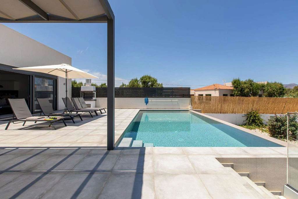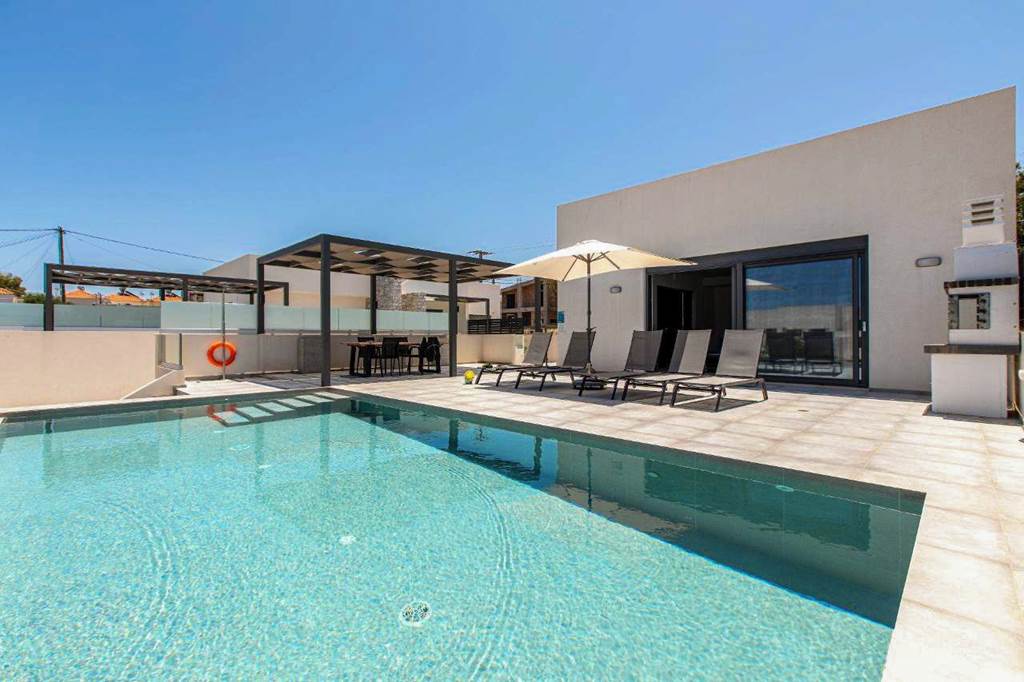 Located in a prime position, just 300m from the beach and close to a popular beach front taverna serving traditional Greek cuisine, Sage Villa is a wonderful choice for those wanting to be close to the coast and amenities. Sage Villa sits within a group of four villas sharing a gated entrance. Steps lead up to the accommodation which consists of a modern, light and fresh kitchen area with breakfast bar and the living space which opens out on to the inviting pool terrace, the perfect place to start your day. Both bedrooms have a contemporary minimalistic style and benefit from their own en suite shower rooms. ... More