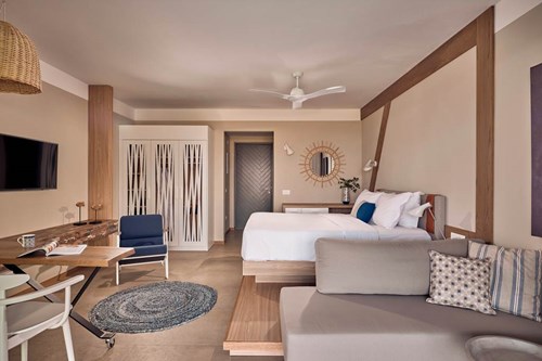 All Inclusive Plus guests staying in Cool Living Selection Suites, can elevate their evening experience with a spirited once per stay 'Night out' session in the charming environs of Agios Nikolaos town with complimentary shuttle, ensuring local adventures with exclusive discounts at select city spots.