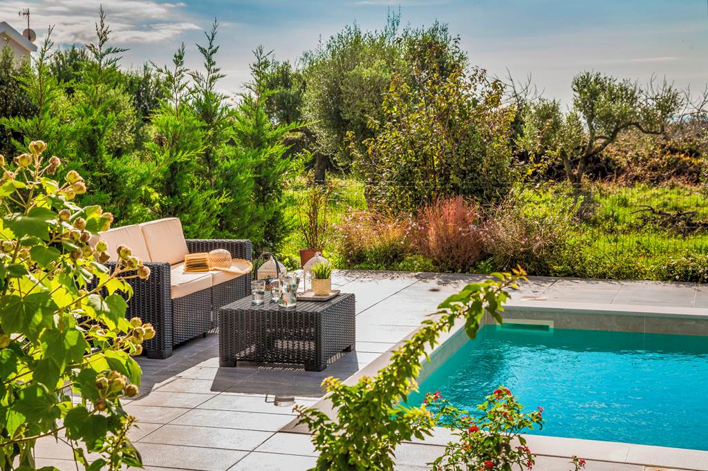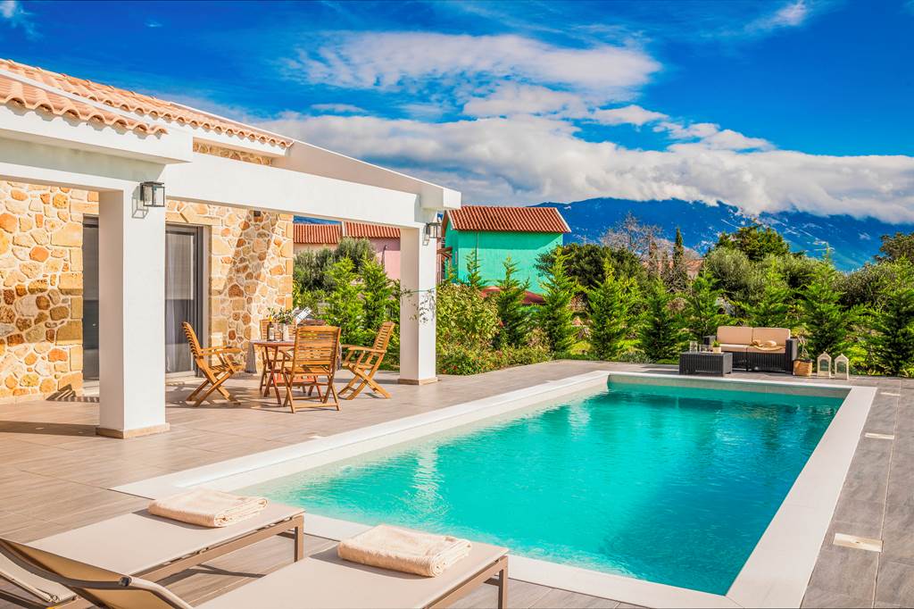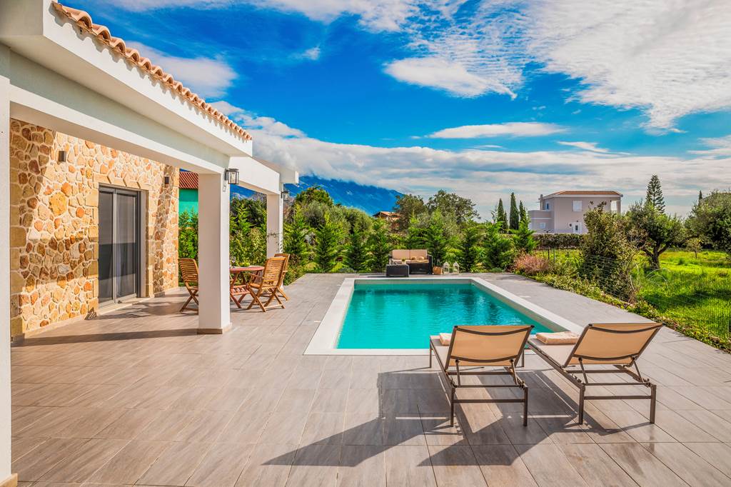 On the island of Kefalonia, Villa Vitalia is nestled among sandy coves and lush green landscape. This romantic retreat boasts panoramic views of the open countryside of authentic Greece. Just a short walk from a mini market, traditional tavernas, and a bakery, this one-bedroom, one-bathroom property offers a laid-back pace of life. Inside, this villa is cosy and comfortable decorated with modern furnishings and contemporary details. Natural light beams through the wide glass patio doors into the open plan living room, dining area, and kitchen. With everything from cable television and a dishwasher to Wi-Fi and air conditioning, this property is equipped with everything you may need during your summer getaway. The patio doors welcome to your paradise as you step out to the lush green shrubbery that surrounds the inviting swimming pool. With two sun loungers, you can relax and unwind. Under the shaded terrace, you will find outdoor dining facilities, great for enjoying breakfast by the pool or a meal prepared on the barbeque. ... More