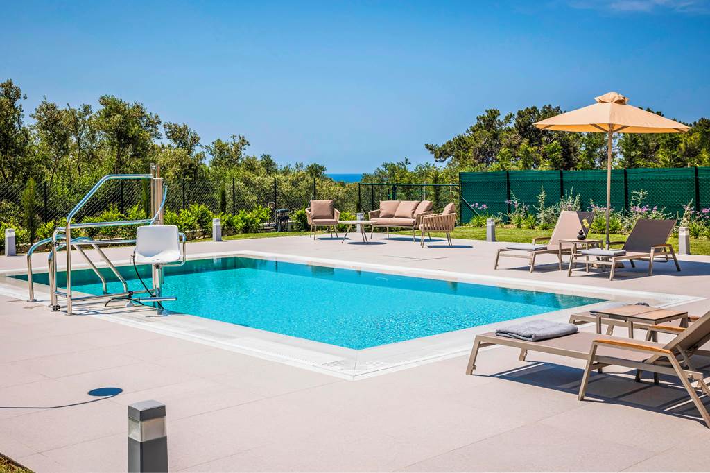 Welcome to Villa Thalassa Sunrise, a thoughtfully designed 2-bedroom, 2-bathroom retreat nestled near the charming town of Lixouri, Kefalonia. Perfectly situated within walking distance of a pristine beach, this villa combines modern elegance with exceptional accessibility features, ensuring a relaxing and inclusive holiday experience for all. Villa Thalassa Sunrise boasts two spacious bedrooms, each styled with contemporary furnishings to ensure restful nights. The two well-appointed bathrooms are equipped with modern fittings, offering comfort and ease for every guest. The open-plan living area is bright and welcoming, with large windows framing views of the surrounding beauty and direct access to the outdoor terrace. Designed with inclusivity in mind, Villa Thalassa Sunrise features a range of accessibility enhancements, including a pool lift for easy access to the sparkling waters of the private swimming pool. Wide doorways, a wet room, and a layout without steps ensure that every corner of the villa is accessible, making it an ideal choice for guests with mobility needs. ... More
