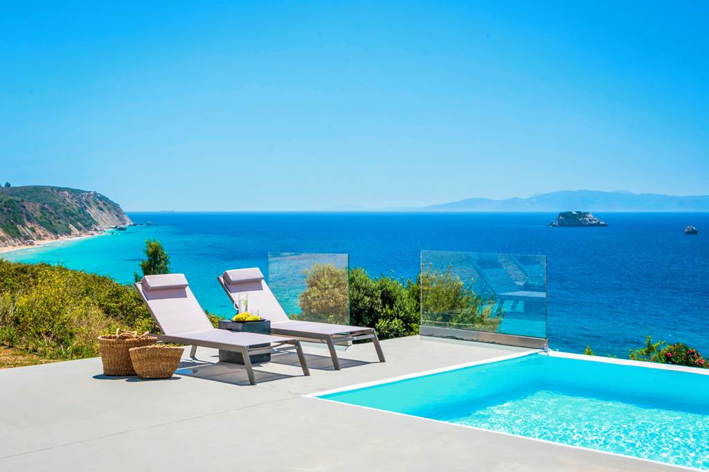 This stunning little villa is situated on a grassy green hilltop overlooking the pristine Ionian waters. Remote enough to enjoy a peaceful relaxing stay, but also well within reach of local bars and restaurants, giving you the option to indulge in the rich local culture and cuisine. Casa Di Mare offers two generously sized bedrooms, both with their own ensuite shower rooms, connected by a spacious, modern lounge and kitchen area. All rooms offer panoramic sea views and direct access to the large pool terrace. Offering sun loungers, al fresco dining facilities and a beautiful infinity pool, Casa Di Mare's terrace offers all of the facilities needed for you to enjoy a long, peaceful day taking in the spectacular views that Kefalonia has to offer. ... More