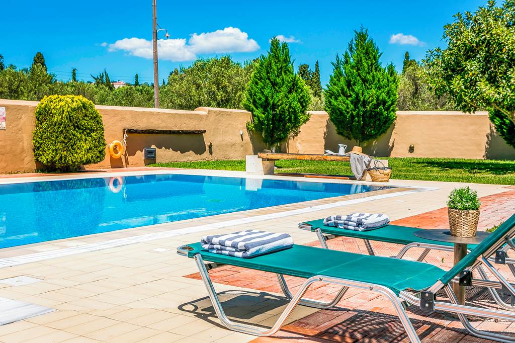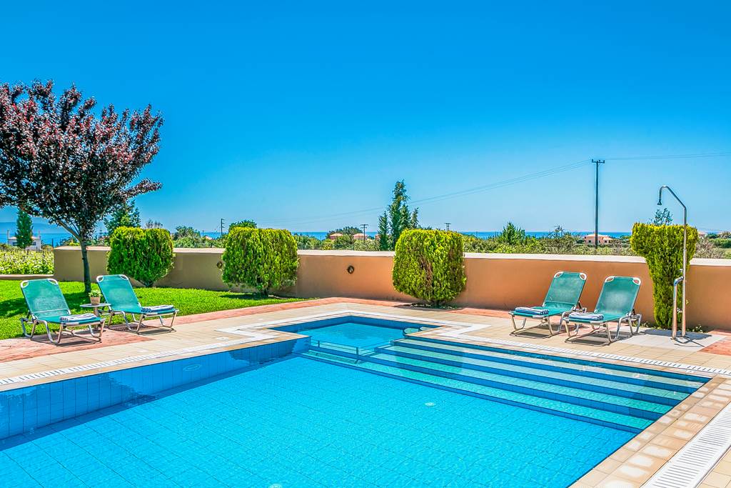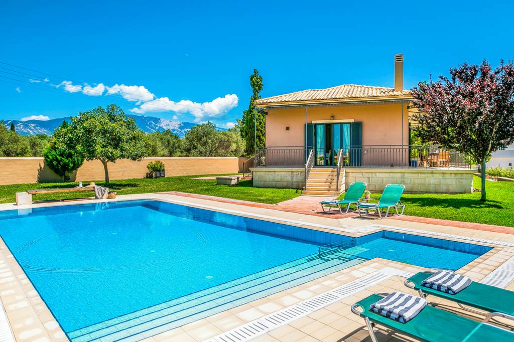 Villa Regaliki is sure to become a favourite with smaller families and couples. Set in its own totally enclosed and secluded large garden this super house offers sea views from the balcony and looks over vineyards and open fields towards Ai Helis Beach. A few minutes easy stroll inland brings you to several tavernas, a bar and a minimarket and the lovely sandy bay of Ai Helis in the other direction (worth mentioning that the access to Ai Helis beach is down around 80 steps) but otherwise the area around Villa Regaliki is flat and easy walking and the closest restaurant is just over 100metres from the villa. The large pool is set into lawns and the grounds are well kept and offer a safe area for children to play and adults to relax. The accommodation is all on the raised ground floor and is split level. Attractive contemporary design and excellent facilities are on offer in this very well maintained villa. An ideal base for your holiday in the southern part of Kefalonia with many glorious sandy beaches to choose from and Argostoli (the capital) only a 15 minutes’ drive away. ... More