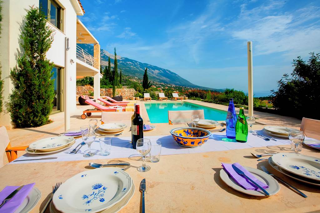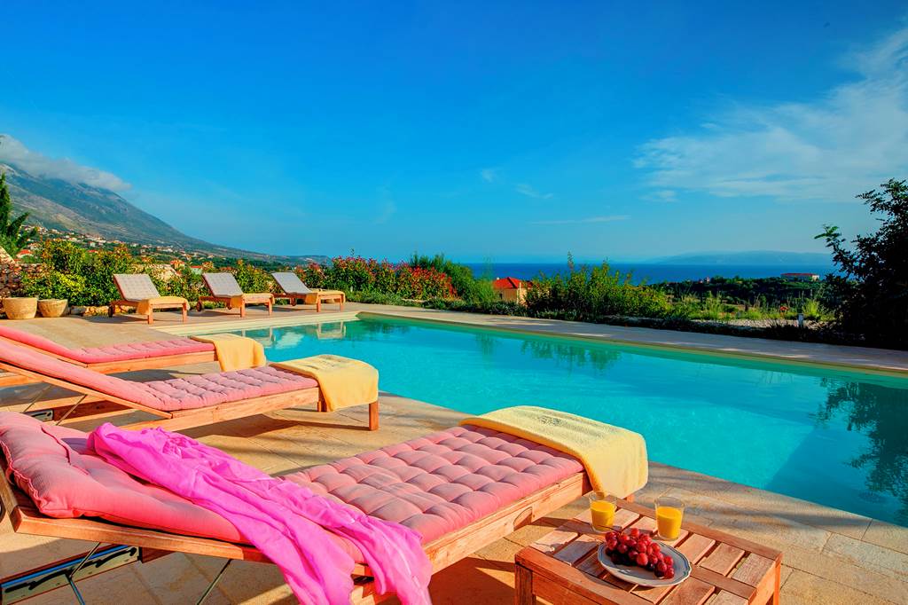 Villa Corali is a 3-bedroom villa with beautiful 360-degree mountain and sea views. The entrance hall leads into two double bedrooms with en-suites. Both bedrooms open onto a pergola-shaded balcony, with outdoor seating and wonderful views over the Ionian Sea and the natural surroundings. Moving downstairs, you will find the connecting living room and kitchen. Overlooking the pool area, this room has access to a shaded seating area. A third bedroom and family bathroom are also situated on this floor. For an evening under the stars in the Villa Corali, dine outside using the outdoor seating area. Enjoy al fresco meals, cooked up using your very own built-in barbecue! ... More