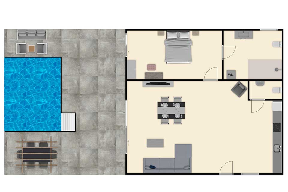 Please note: the pool has an infinity edge. For your safety please do not use inflatables in the pool, walk, sit, or stand on the infinity edge. Ensure children remain supervised at all times.