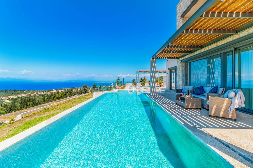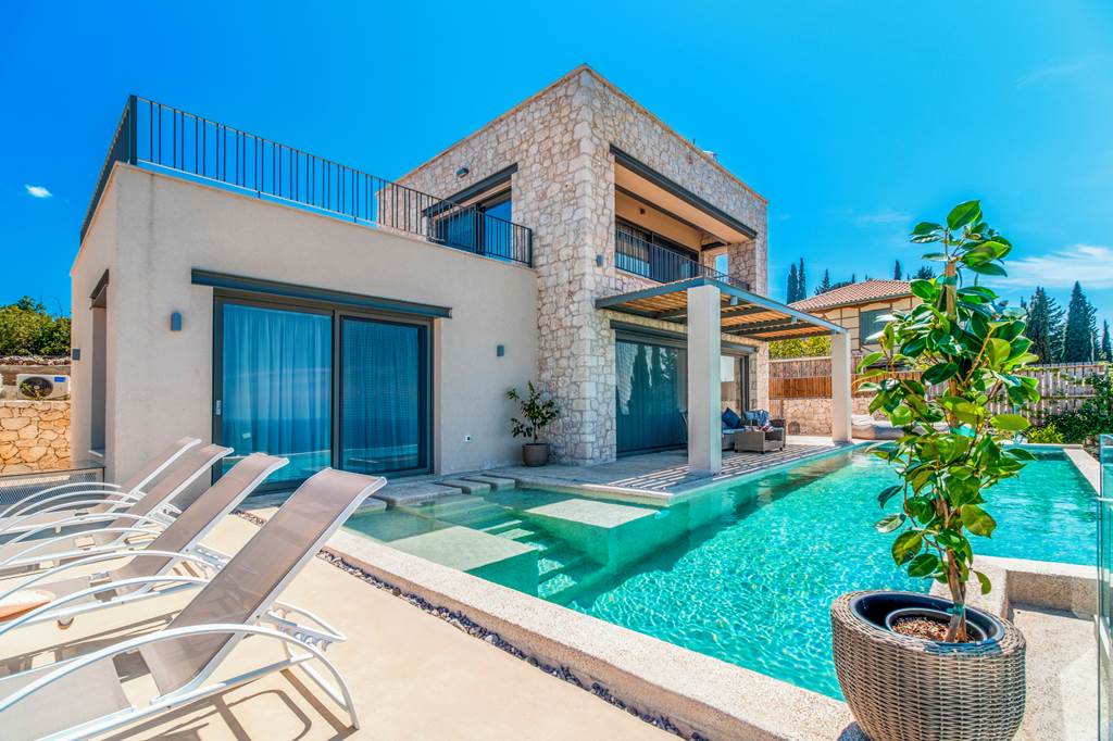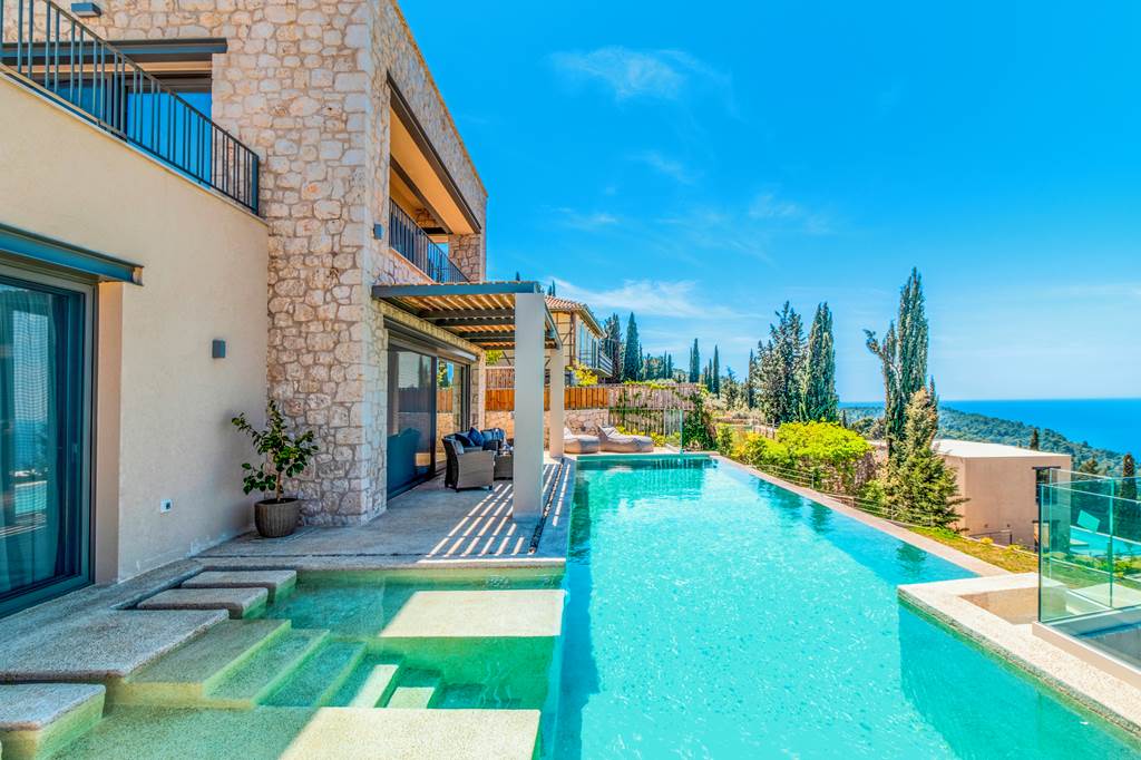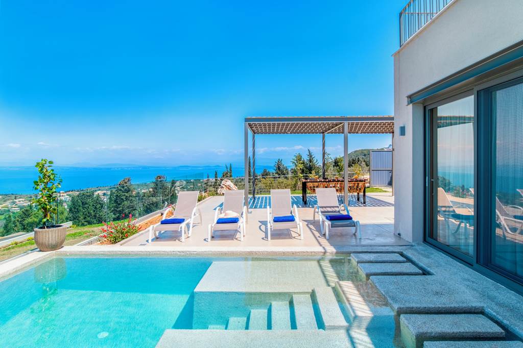This stunning three floored villa stands proudly on the steep hillside above the coastline offering glorious sea views. Villa Orion offers a wide terrace area with built in barbecue, alfresco dining and comfortable seating around the generous infinity pool. The views from all areas are breathtaking - an unending vista of blue and green to relax and enchant you. The interior is full of light from large glass doors and the fresh contemporary decor and furnishings. The villa offers a bedroom on each level, with the upper floor Master suite having access to a stunning veranda with incredible panoramic views which can be enjoyed in privacy. The lower garden floor has its own entrance from the terrace, as well as interior stairs access. Here, there is a bedroom with double bed, ensuite shower room and an additional shower room. On the ground floor level is the third bedroom with its own ensuite bathroom and a large living room. ... More