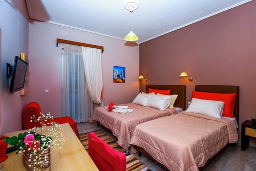The Kyparissia Beach Hotel is a great base for those wanting to combine a beach holiday with experiencing everything that a traditional Greek town has to offer. Offering great value for money and a fantastic location, it is across the road from the marina. Great views of the Ionian Sea and beautiful sunsets can be enjoyed from the terrace that is surrounded by flowering bougainvillea. The town centre of Kyparissia, with its pavements cafes and shops is a short walk away and offers the chance to get off the beaten track and experience the Greek way of life. ... More