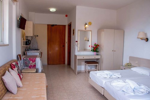 Located on the outskirts of Faliraki stands the Elarin Studios and Apartments. This lovely Self Catering property has all that you need for your break in Rhodes. Studios come equipped with kitchenettes and everything that you would need for a basic home from home stay. Outside there is a good-sized pool area with plenty of space perfect for soaking up the Grecian sun. The hotel is located a short walk away is the beach and the resort centre making this a great place to explore the resort and its surroundings. ... More