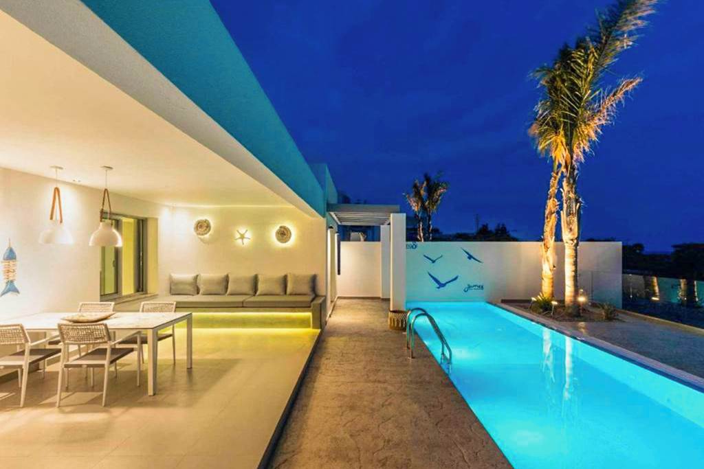 • Since the photos of Villa Damaskina were taken, the trees in front of the pool have grown and now restrict the sea view from the terrace. New images coming soon.