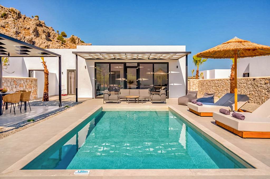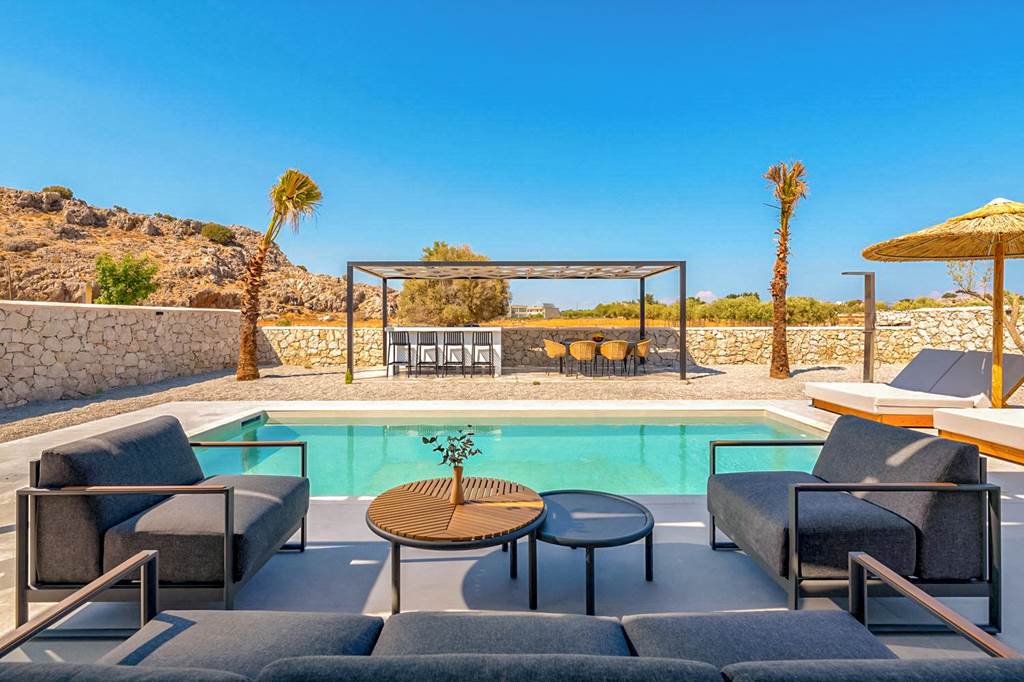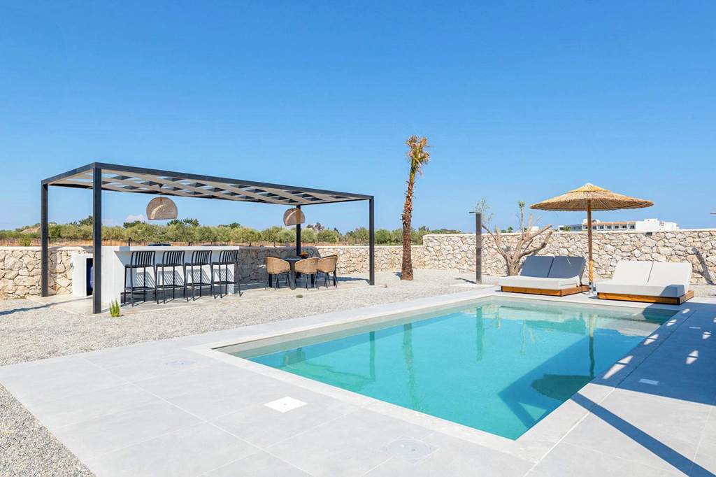 Villa 10 Hozan is located in Kolympia, Rhodes. This detached vacation rental property offers air conditioning, Free Wi-Fi and sleeps up to 4 people with 2 Bedrooms and 2 Bathrooms. There is a private pool (South-East Facing) with barbecue. Walking distance to the Beach and Restaurants. ... More