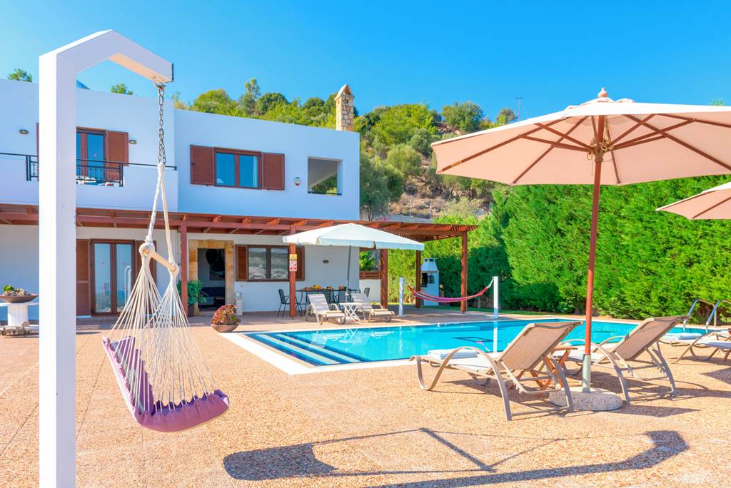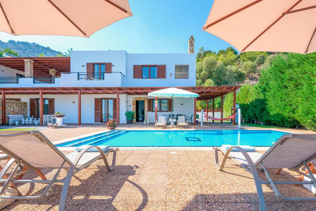 Located in the Lindos area, Villa Krini Secret is equipped with everything that a large family or group could want when looking for a getaway. The villa is set in spacious grounds with lawns, terraces and a large private outdoor pool offering the opportunity to cool off after a long day of sunbathing. Guests can prepare a meal in the fully equipped kitchen or fire up the barbecue and dine al fresco out on the covered terrace. There is a TV in the comfortable lounge and table tennis tables to keep the kids entertained. The bedrooms are all large with two doubles and a twin, all with direct outside access, making this a truly special villa to make the most of your time on Rhodes. ... More