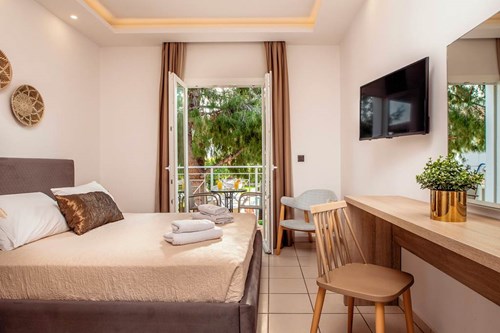 Set within lush gardens and surrounded by greenery you will find the Aeolos Boutique Hotel & Suites. Relaxation is at the forefront here, so kick back and enjoy the pretty surroundings and friendly hospitality on offer. Tranquility continues in the rooms, which are spacious and beautifully decorated in soft tones. For more active days, the beach and resort centre are only a short walk away. ... More