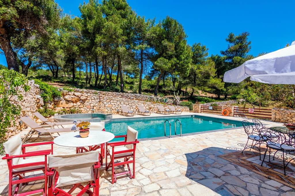 The beach is a medium-sized stretch of coastline with not much sand but many small round pebbles. A nearby taverna offers some great seafood options and some cool beers and cocktails to relax in the sun with. There are small boats for rent, sea-bicycles and also canoes to explore nearby coves with.