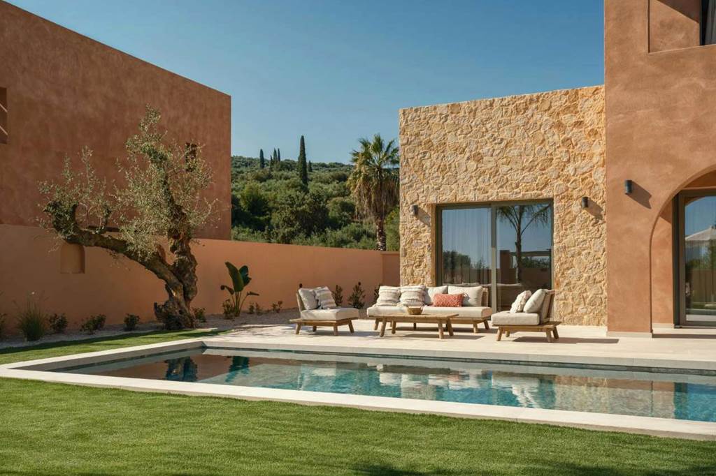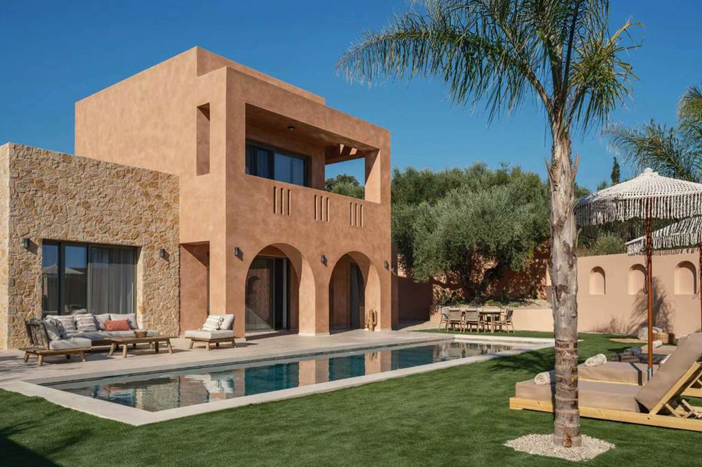 Villa Gaia offers a serene retreat for smaller groups or couples seeking a refined escape in the tranquil resort of Ammoudi. With a striking Moroccan-inspired design, warm terracotta tones, arched details, and elegant outdoor spaces, Gaia delivers style and comfort in a two-bedroom layout, yet still set in spacious grounds. ... More