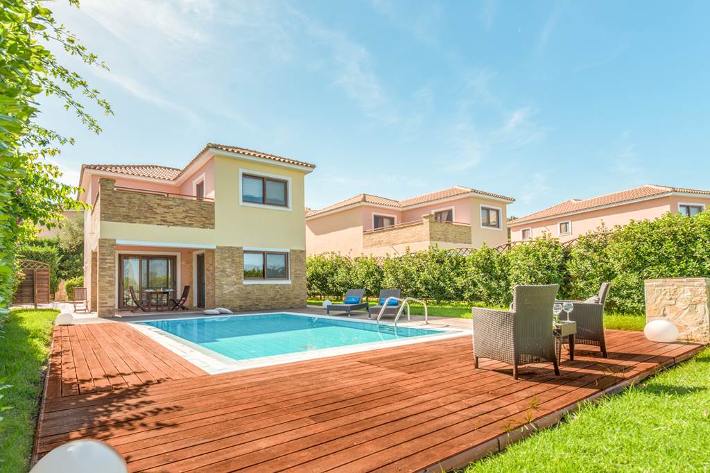 Enjoy an enviable hilltop position when you stay at the three-bed St John villa. With panoramic views over Zante's charming countryside and the ever-close Ionian Sea, you'll feel like you're in paradise during your stay here. Cast your eyes out to sea while relaxing in the perfectly placed private pool. You won't be able to tear yourself away from the villa's terrace, where comfy sunbeds are waiting. This villa is luxurious throughout. The open plan kitchen/living area is great for families and groups of friends, with dining facilities and a large patio door leading out onto the terrace. Golden beaches are on your doorstep, and the town of Zante can be reached quickly by car. You can find restaurants and bars on foot in Tsilivi resort, but the complex's on-site restaurants are all yours to enjoy too! ... More