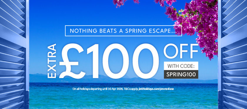 Save an extra £100 on ALL holidays departing before 30 April with code SPRING100. That’s on top of our £100pp off all holidays. T&Cs apply.