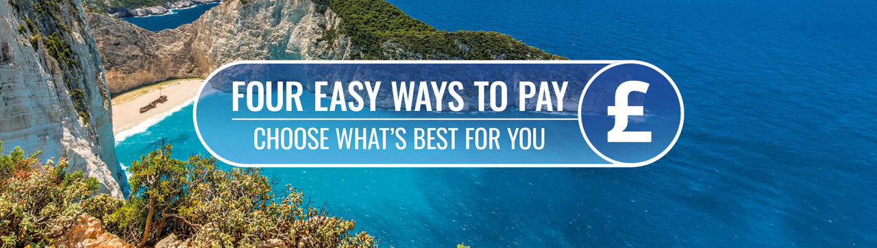 Spread the cost over three interest-free payments. Available on holidays under £2,000, departing within 70 days. Available for online bookings only.