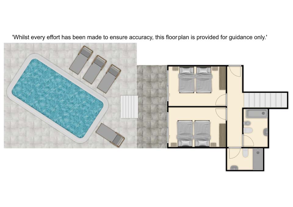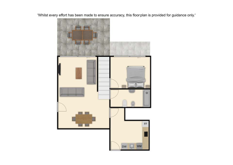 Please note: the ground floor bathroom and bedroom have a number of steps leading to them.