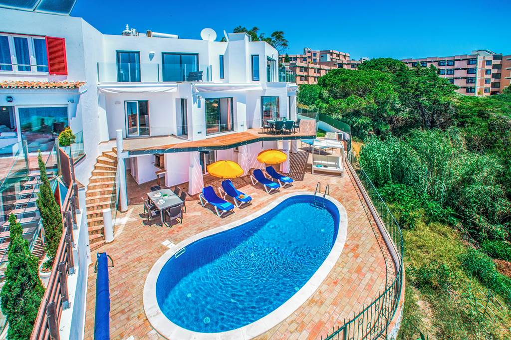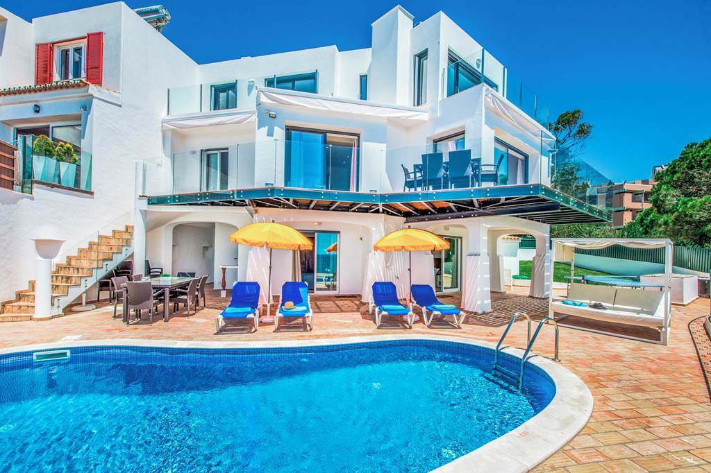 Jam packed with wow factor, Villa Mar Albufeira offers one of the best locations for beach front villas. Beautifully furnished to a high standard the five bedroom villa spanning across three floors offers views from almost every point of the villa. Designed thoughtfully to ensure it's guests experience as much of the magnificent view and location as possible, the full length windows and sliding glass doors bring you even closer to the turquoise waters. The interior is furnished and styled to match the incredible exterior. The spacious rooms all have air conditioning, glass patio doors, and individual styles creating lively character. There are many wondrous aspects of Mar Albufeira, but we chose this villa because it really makes you feel like you're at the beach. It's not often you find a property where you can both see and hear the ocean. If you'd like to venture out, there are restaurants only a short walk away and the lively resort centre of Albufeira is also within reach. Be sure to explore the historic town, try the local cuisine or boogie on down in the downtown bars. ... More