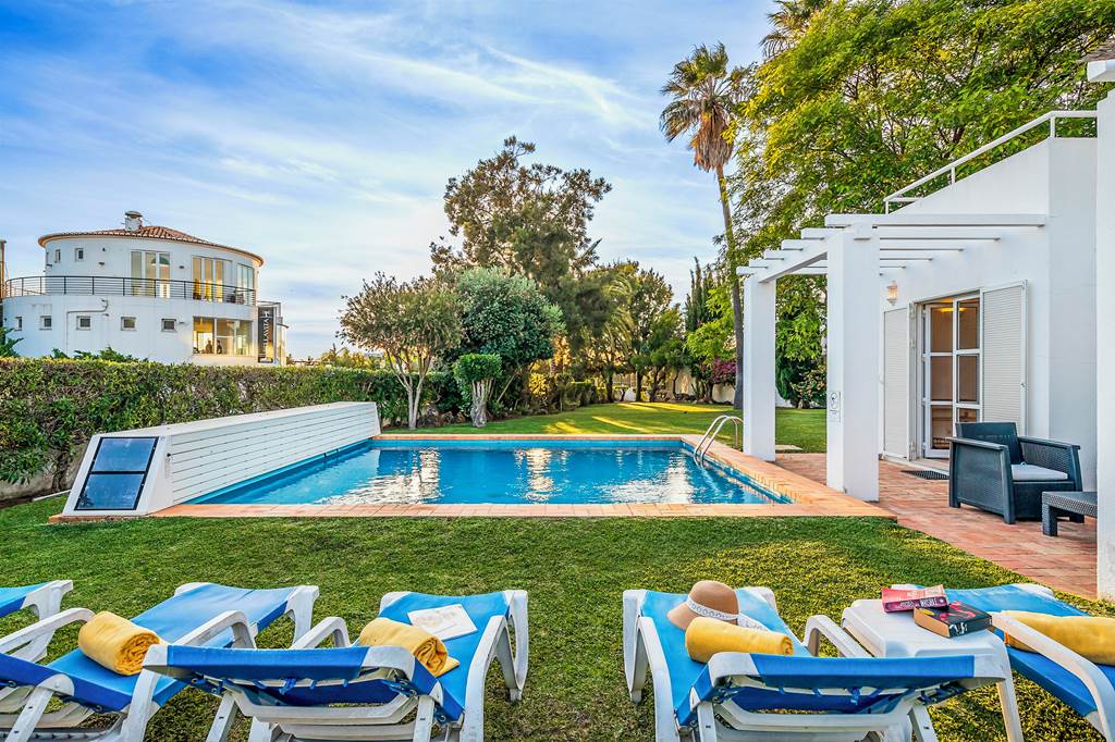 Dreaming of heading to the Algarve for some all-year-round sunshine? Villa Monte Gale offers up to eight guests with an exceptional getaway to Portugal. Location in Gale, this property is a short distance from the beach, water sports, horse riding, and promenade restaurants. The perfect base for friends, and families, at Villa Monte Gale you’ll find fun for all the family. Spend the days basking under the hot sun on a sun lounger or in the outdoor seating area by the private swimming pool. At night, gather around the al fresco dining table to enjoy a meal prepared on the barbeque. Come noon or night, marvel at the natural beauty and beautifully landscaped garden grounds that surround you. For elevated views over the sea and shore, head to the balcony terrace. Inside, the property is light and bright with wide patio doors and a minimalistic yet comfortable interior. Come nightfall, guests can retreat to one of four bedrooms. ... More