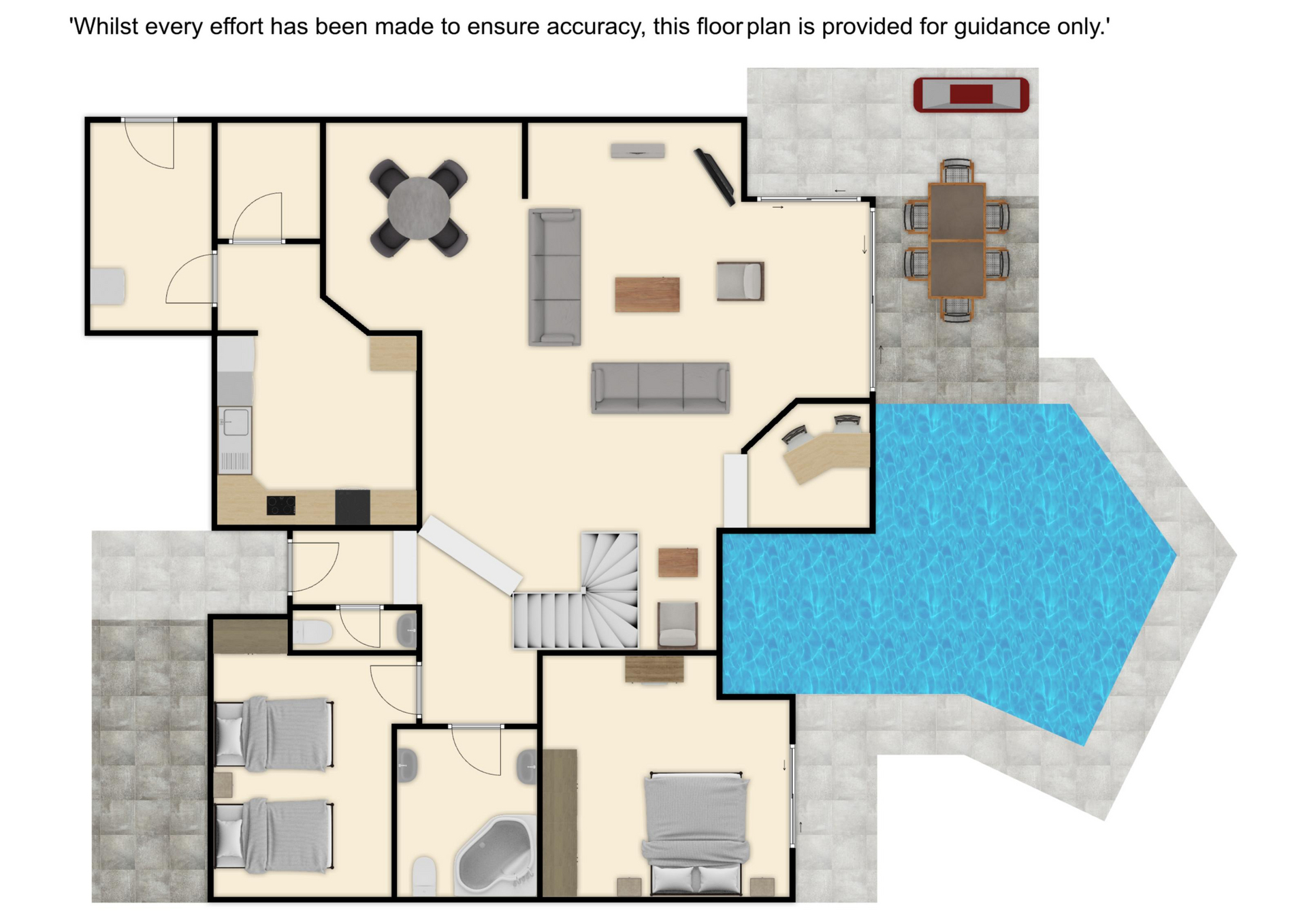 Villa Tilia is a four-bedroom villa split over two floors offering a spacious and classic setting for its guests. Step into the entrance hall and notice how the high ceilings and many windows allow light to flood in and fill the space. Continue through to the lounge to find comfortable seating surrounding the TV with views over the pool terrace accessible by the patio doors. There are dining facilities and a large kitchen with modern design and appliances to make your stay easier. On this level are two bedrooms, a double with patio doors and a twin bedroom which shares a large bathroom with a corner bath. Also on the ground floor is a utility room where you can do your washing. Up on the first floor, is the main bedroom with a double bed and a large en-suite bathroom with both a bath and shower. A further twin bedroom with a balcony is on this floor as well as access to the terrace. Outside in the garden, there is a well-kept lawn surrounding the paved pool terrace. Sun loungers, parasols, and a poolside shower are available for your use as well as the glistening 9x4m pool easily accessible by steps. To the right of the pool terrace, you'll find alfresco dining facilities and a brick-built barbeque ideal for grill nights. ... More
