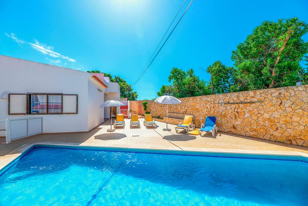 The perfect base to enjoy a memorable holiday in the Algarve, Villa Mar do Estrela has all of the home from home comforts you need for a hassle free vacation in the sunshine. Accommodating six guests, this villa has three spacious bedrooms, a fully equipped kitchen, living area and dining space. Air conditioned throughout for optimum comfort, this property has also been decorated to a high standard, with lots of modern furnishings that will enhance your stay further. However, it is this villa’s lovely outdoor space that will impress. Boasting an inviting pool that you will want to dive straight into, a picture perfect outdoor dining space with BBQ facilities and plenty of sun loungers to bake and rotate on, outdoor living has never looked so good. ... More
