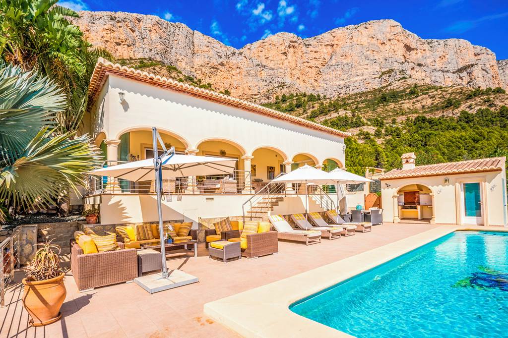 Located on the outskirts of Javea, this beautiful villa offers the ideal blend of modern living and comfort, set against the stunning backdrop of the Montgo Mountain. Designed with modern living in mind, the villa boasts spacious interiors and a seamless connection between indoor and outdoor living spaces. Inside, the open-plan kitchen and lounge area creates a bright, airy environment, ideal for both relaxing and entertaining. The modern kitchen is fully equipped for all your culinary needs, while the stylish lounge area offers a comfortable space to unwind after a day of exploring. Outside, the villa truly shines. The large private pool is ideal for cooling off on hot summer days, while the spacious terrace offers plenty of room for lounging and taking in the breathtaking mountain views. A BBQ area and alfresco dining space make it easy to enjoy meals outdoors, whether you're grilling fresh local seafood or enjoying a glass of wine under the stars. For those looking to relax, there are comfy outdoor sofas where you can soak up the sun or enjoy a quiet moment with a good book. ... More