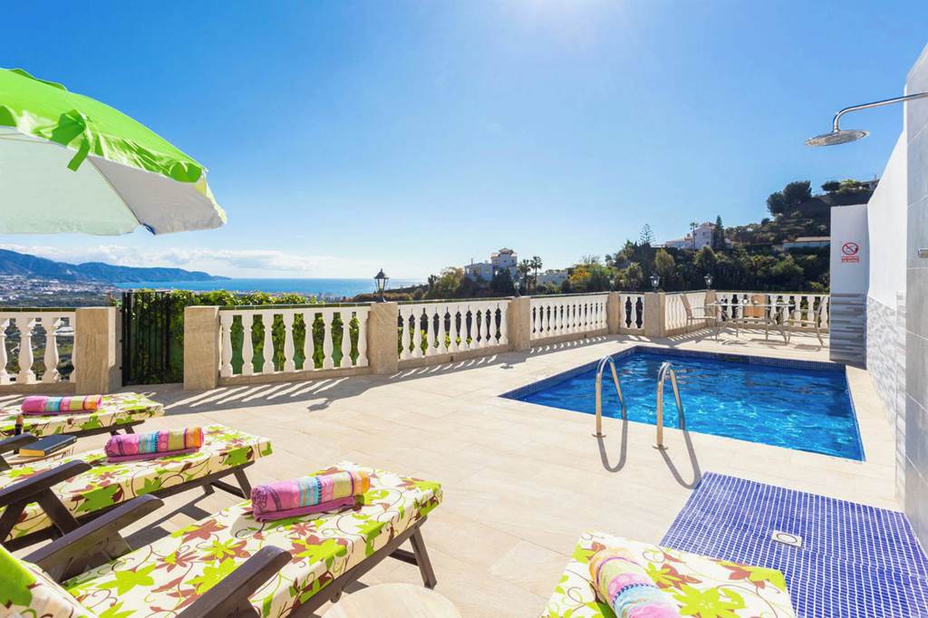 Villa Alegria is located in Nerja, Costa Del Sol. This detached vacation rental property offers air conditioning, Free Wi-Fi and sleeps up to 4 people with 2 Bedrooms and 1 Bathrooms. There is a private pool (South Facing) with barbecue and Sea views. ... More