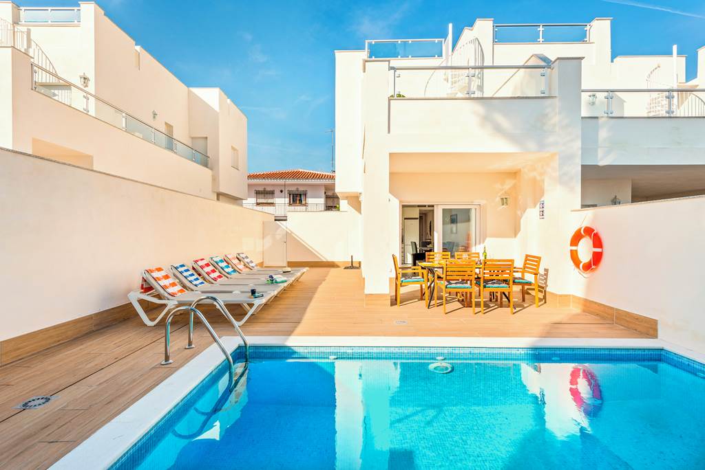 The white exteriors and token nautical-style, colourfully-striped features make Villa Bonilla a thriller. Three charmingly decorated rooms and indoor spaces make this a top choice for up to six people looking to uncover Nerja’s spoils. Cook up Spanish feasts in the kitchen or with the barbecue. Later, how does chilling with a good book and a glass of local wine sound all by the side of your own private pool? If sightseeing’s your thing, take a short stroll to Burriana Beach. You might even fancy hopping in the car to discover magical Malaga, around an hour With your own away. ... More