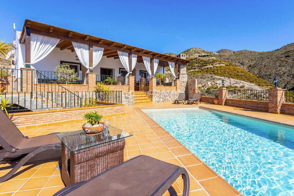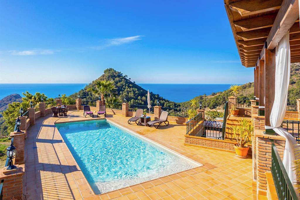 Villa Flores is located in Nerja, Costa Del Sol. This detached vacation rental property offers air conditioning, Free Wi-Fi and sleeps up to 10 people with 5 Bedrooms and 3 Bathrooms. There is a private pool (South Facing) with barbecue and Sea views. ... More